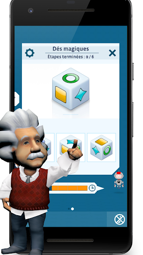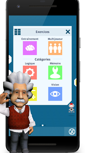 Albert Einstein et Robo, son petit assistant, vous soutiendront tout au long du jeu. Ils seront à vos côtés à chaque fois que vous aurez besoin d'aide, ils vous expliqueront, de façon illustrée, l'aspect scientifique de chaque exercice. Ils vous motiveront pour que vous progressiez et que vous preniez soin de vos neurones.