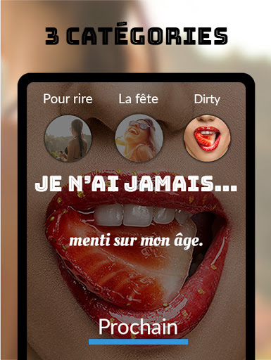 Le jeu est idéal pour tous les genres de fêtes, et un des jeux de boisson les plus amusants et les plus connus du monde. Vous êtes certain de commencer la fête comme il se voit peu importe où vous êtes, et si vous recherchez un bon jeu de soirée, Je n’ai jamais est le choix le plus évident. Que vous choisissiez Pour rire, Fête ou Coquin, préparez-vous à vous éclater avec le jeu de soirée le plus amusant et hot du monde. Maintenant disponible en français!