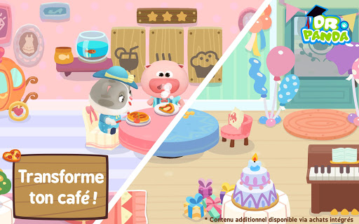 Cette version de Dr. Panda: Mon Café est gratuite au téléchargement. Profite de plus de contenu et ajoute plats et boissons à ton menu, décorations, et plus encore via des achats intégrés. Ces achats intégrés sont unique et débloque de manière permanente le contenu souhaité, pour ton compte. Vérifie bien les réglages de ton appareil pour plus de détails sur le contrôle parental concernant les achats intégrés, et n’hésite pas à nous contacter à support@drpanda.com pour plus de renseignements.