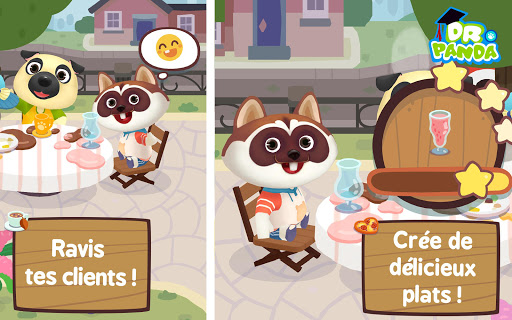 Viens accueillir tes clients à leur entrée au café et mets ensuite tes savoirs-faire à l'épreuves avec plus de 40 en-cas et boissons à préparer. Avec, Dr. Panda: Mon Café, crée le moment gourmand idéal pour tes clients! Ne les laisse pas patienter trop longtemps et assure toi de prendre leurs commandes dans les temps!