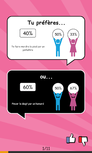 En cliquant sur la réponse de ton choix Compare toi aux autres joueurs pour voir si tu penses limite limite comme eux .N'hésite pas à ajouter tes propres "Tu préfères" pour les autres joueurs.