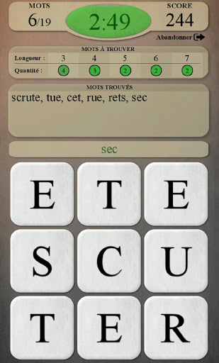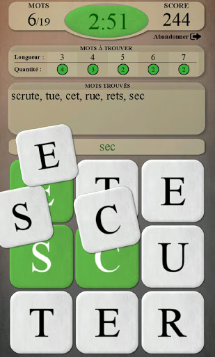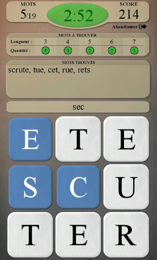 - Trouvez tous les mots cachés sur le plateau avec l'utilisation des lettres disponibles.