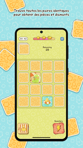 - Gagne des pièces et des diamants en trouvant toutes les paires de cartes identiques avant la fin du temps imparti