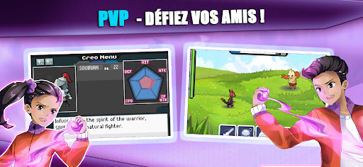 • Multijoueur PVP de style jeux comme pokemon pour les combats en arène, les batailles et les duels dans des graphismes au format pixel