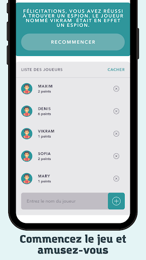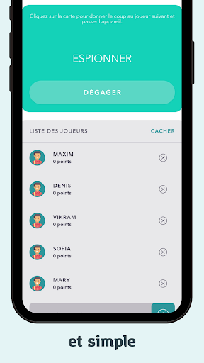 Jeu pour une entreprise de 3 joueurs ou plus. Jouez lors d'une soirée avec des amis ou des proches, vous n'avez besoin que de quelques joueurs et de l'application Spy pour passer un bon moment ensemble.