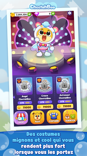 - Battez les ennemis et collectez des pièces et des pierres précieuses - Achetez un costume de CheetahBoo pour créer votre propre CheetahBoo - Recrutez et améliorez divers et mystérieux compagnons.