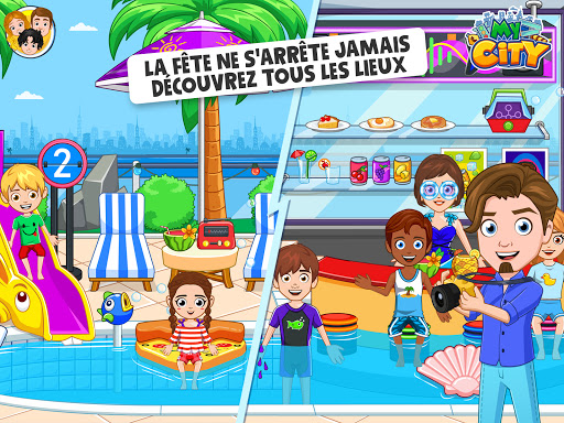 Préparez-vous à passer de merveilleuses vacances dans My City : À l'hôtel ! Dirigez-vous vers la réception afin de vous enregistrer, écouvrez le restaurant et écoutez de la musique, faites une sieste dans la chambre familiale, la chambre VIP ou la suite Lune de miel ou encore offrez-vous un moment de bien-être. Passez du temps au spa et savourez une bonne pause repos et détente. Ne manquez pas non plus de vous rendre sur le toit et de vous émerveiller devant la plus grande piscine de l'histoire de My City ! Réservez déjà vos prochaines vacances direction My City : À l'hôtel. Plaisir et aventure seront au rendez-vous !
