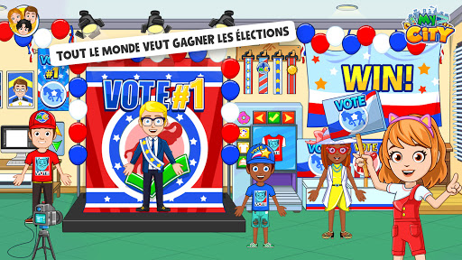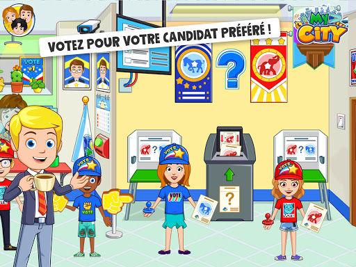 C'est le jour des élections dans My City et tout le monde est impatient ! Qui va gagner et qui va perdre, vous seul pouvez en décider. Tout le monde veut être le nouveau maire de My City - pour qui allez-vous voter ? Asseyez-vous dans le bureau du maire, visitez la mairie et explorez toutes les pièces, déployez vos pancartes électorales et prenez soin de votre ville. Tout est possible dans ce nouveau jeu My City !