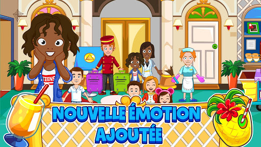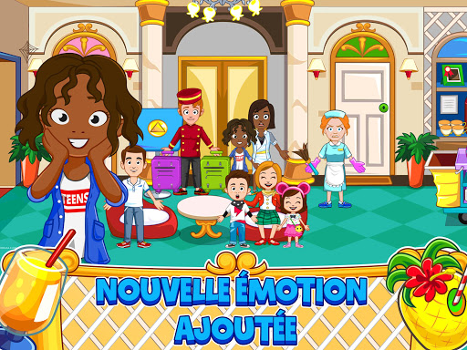 Le nouveau Grand Hôtel de Ma Ville propose une aventure amusante dans CHAQUE chambre! Laissez le chasseur porter la valise du couple en voyage de noces ; assurez-vous que les enfants jouent gentiment dans la piscine et dans les salles de jeux de l’hôtel ! Avec les cocktails de fruits les plus savoureux, un immense bateau-pirates et notre NOUVELLE FONCTIONNALITÉ ÉMOTION ; le nouvel hôtel de Ma Ville a enfin ouvert ses portes !