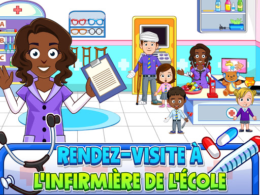 Bienvenue dans Ma Ville : École maternelle. Construisez, imaginez et jouez dans votre propre école maternelle. Des heures de jeux d’imagination pure dans la cour, une visite à l’infirmière de l’école, apprenez, préparez des pauses déjeuners savoureuses et plus encore !