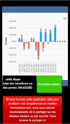 Le jeu est conçu pour vous aider à acquérir les compétences nécessaires pour continuer à gagner sur le marché réel du Forex.