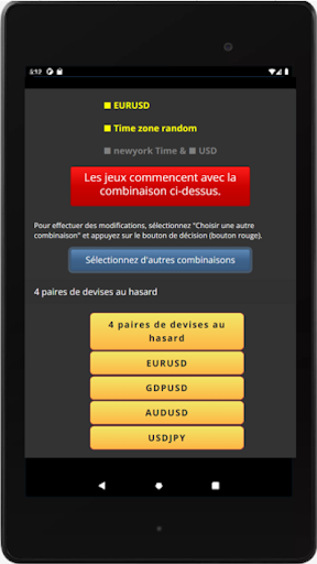 Sept paires de devises et cinq fuseaux horaires peuvent être sélectionnés arbitrairement. Vous pouvez vous entraîner au forex dans vos paires de devises et fuseaux horaires préférés.