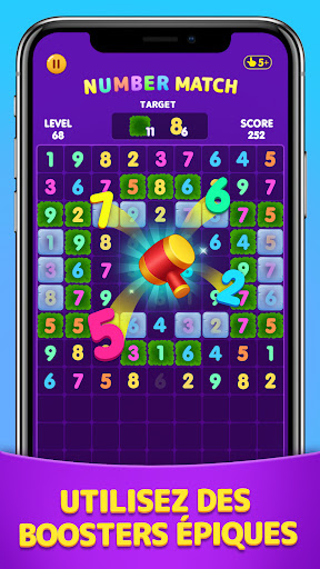 Nous avons désigné des milliers de puzzles de matchs à battre. Différents puzzles ont des cibles de niveau différents. L'objectif niveau se compose de plusieurs éléments tels que les chapeaux d'herbe, de lys, de slime et de magie, etc. Contrairement aux jeux de matchs de numéro classiques tels que NumberZilla et Number Match, vous gagnez une fois que vous avez atteint la cible au lieu de nettoyer le tableau. Number Blast - Match Ten Crush est un puzzle mathématique qui varie facile à apprendre. Furez les numéros pour effacer les éléments du tableau et vous pouvez profiter de ce jeu de numéro gratuit.