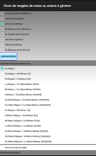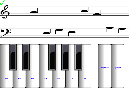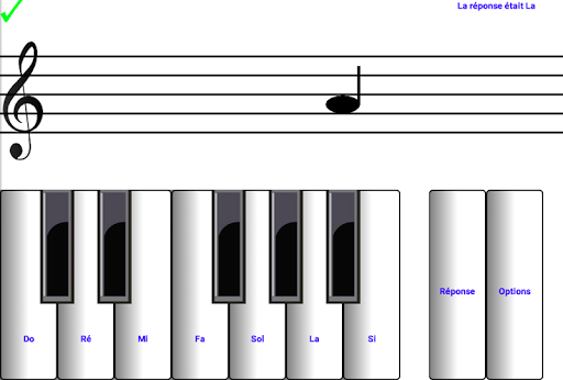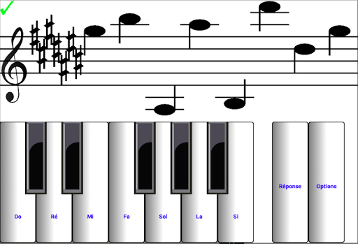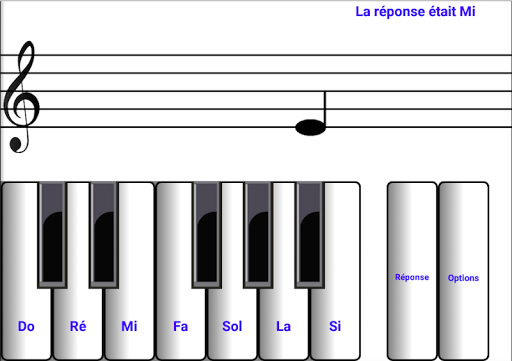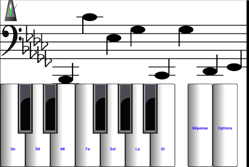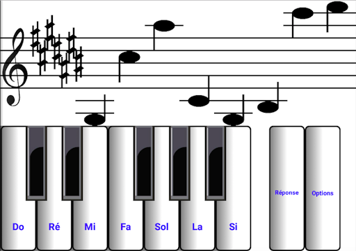 Apprendre à lire les notes de musique. Lecture à vue en Clé de Sol et Clé de Fa. Notes en dessous et au dessus de la portée. Couvre 6 octaves. Applicable à tous les instruments. Notes générées aléatoirement et non limitées à une serie répétée. Interchanger entre les Clés pour plus d'amusement. Réponse pour les débutants. Apprentissage controlé en limitant les sections d'octaves. Gammes Majeuers et Mineures (Dièse et Bémol). Son de piano peut être coupé. Inclure score et statistiques de performances de test. Idéal pour les portables. Parfait pour les tablettes.