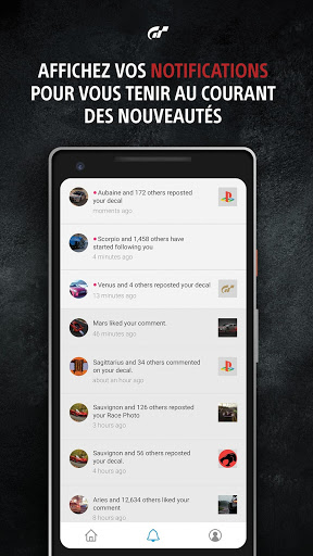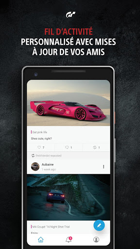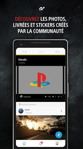 Des millions de joueurs GT Sport prennent des photos de voitures et de paysages, créent des livrées et partagent des moments de course intenses. Découvrez-les sur votre FIL D'ACTIVITÉ personnalisé, Aimez, Commentez et Repostez ceux que vous préférez. Postez une MISE À JOUR DE STATUT pour partager vos impressions entre Amis et Followers.