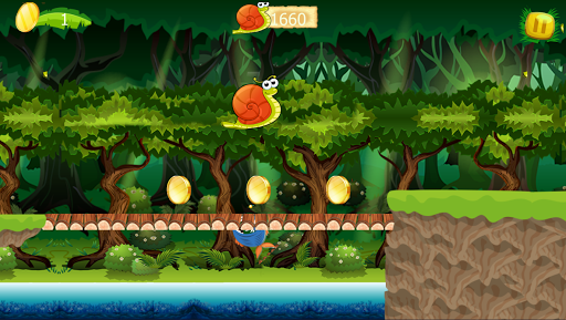 tout est simple l'escargot court et tu doit taper sur ton écran pour que tu puisse sauter et éviter les obstacle et le requin , ramasse le plus possible de jeton en or pour que les niveau se complique.