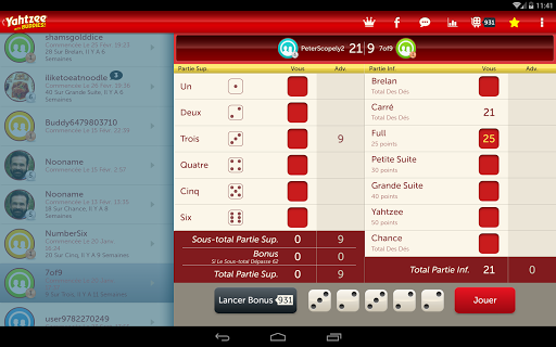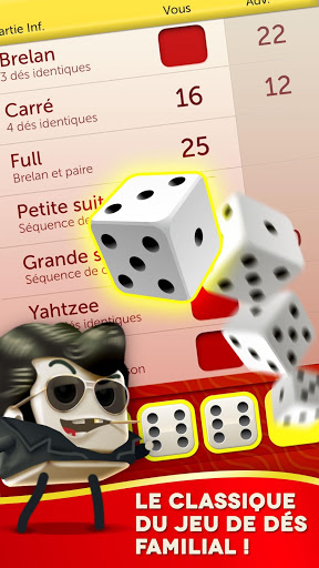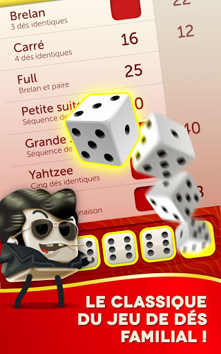 • Jouez au yahtzee dans les règles de l'art. Le jeu de dés classique arrive sur mobile avec de toutes nouvelles fonctionnalités sociales et des graphismes incroyables ! Facile à comprendre mais difficile à lâcher, le yahtzee est un jeu addictif dont l'issue change à chaque partie !
