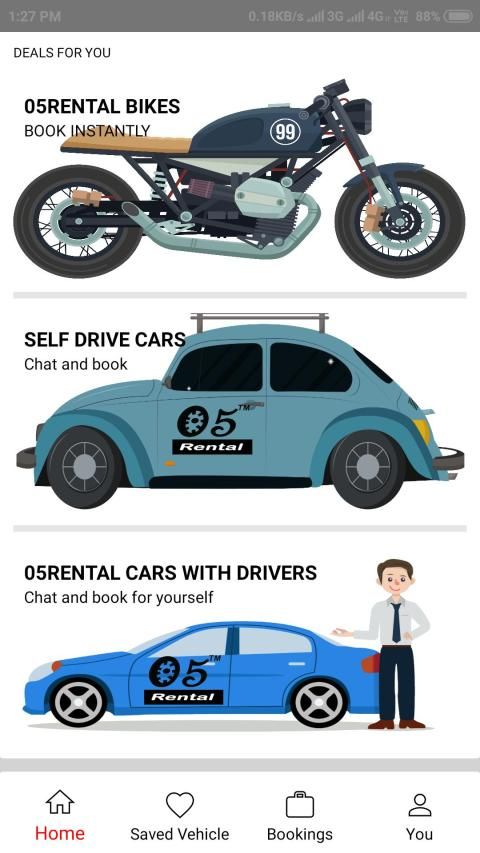 भारत की सबसे तेजी से बढ़ती बाइक और कार किराए पर लेने की सेवा प्रदाता। "05 रेंटल" हमारा पहला ब्रांड है, जो किराए पर वाहन (टू व्हीलर और फोर व्हीलर) हथियाने के लिए एक ई-प्लेटफॉर्म है, और अन्य यात्राएं और एकल स्पर्श के भीतर शिविर। हम लोगों की यात्रा को आसान, आरामदायक बनाने की उम्मीद करते हैं। हर वर्ग की मांग को पूरा करने की बेहतरीन क्षमता और उस अधिकतम उपयुक्तता के साथ। आपकी यात्रा हमारी पहली प्राथमिकता होगी।