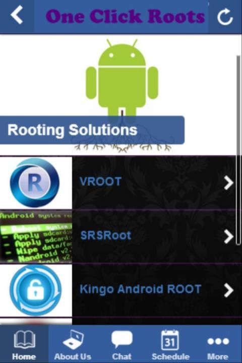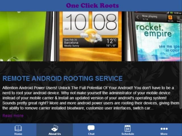 OneClickRoot एप्प्स और अपडेट! यह "रूट मेरे Droid" app आप अपने एंड्रॉयड फोन या टैबलेट और अपने Droid निहित है एक बार जड़ करने की जरूरत है सब कुछ है; नवीनतम जड़ें क्षुधा से चुनें। OneClickRoots.com पदों दैनिक Android पक्ष पर समाचार तोड़ने। क्यों अपने आप को अपने एंड्रॉयड डिवाइस के बजाय अपने मोबाइल वाहक और अपने Android के ऑपरेटिंग सिस्टम का एक अद्यतन संस्करण स्थापित के प्रशासक नहीं बना? बहुत महान सही लगता है? एंड्रॉयड बिजली उपयोगकर्ताओं के लिए उन्हें मुक्त करने के लिए कस्टम अनुप्रयोगों और पगहा, वाहक bloatware स्थापित निकालने के यूजर इंटरफेस, स्विच वाहक अनुकूलित, सुरक्षा बढ़ाने के लिए, स्थापित करने की क्षमता दे रही है, उनके उपकरणों पक्ष रहे हैं। सरल शब्दों में, आप अपने डिवाइस के लिए "रूट" अनुमति देता है कि एक "र अनुप्रयोग" स्थापित करने का अर्थ है "अपने Android पक्ष"। "Superuser" स्थिति सिर्फ अपने Android के ऑपरेटिंग सिस्टम के किसी भी हिस्से के बारे में संशोधित करने के लिए सक्षम करने के लिए आप उन्नत अनुमतियों देता है।