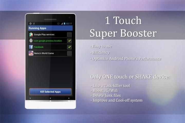 एक टच - सुपर बूस्टर आसान करने के लिए इस्तेमाल करते हैं और उपयोगकर्ता के अनुकूल इंटरफेस, बहुत सरल है।