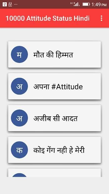 Hindi Attitude Status application is a great status application having various Status in English.