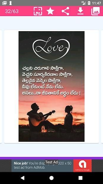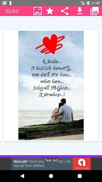 Lots of romantic and heart touching telugu love quotes or prema kavithalu quotes available. Save your telugu love quotes image directly your SD card or Phone Gallery.