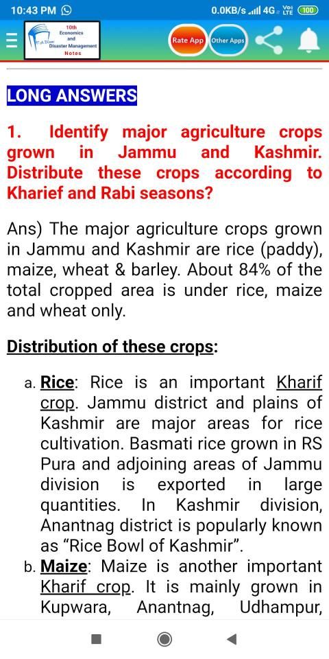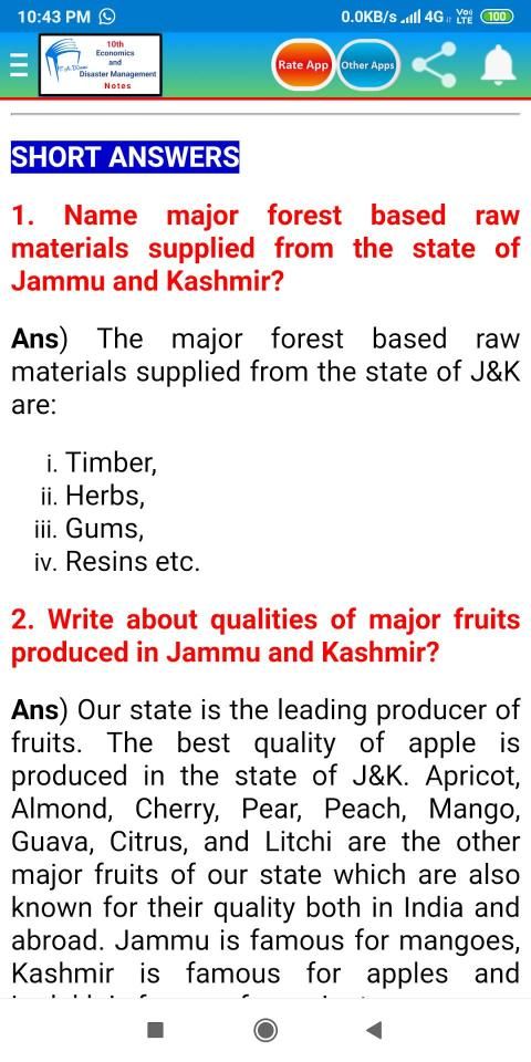 10 वीं अर्थशास्त्र और आपदा प्रबंधन नोट्स इस Android आवेदन में