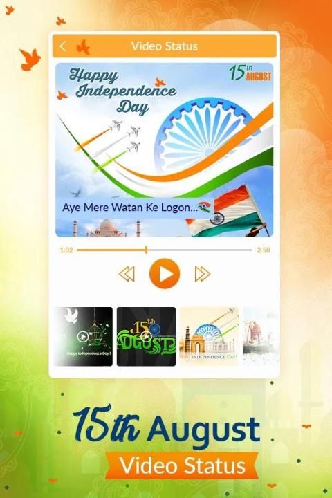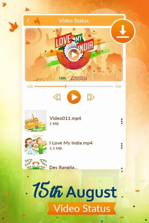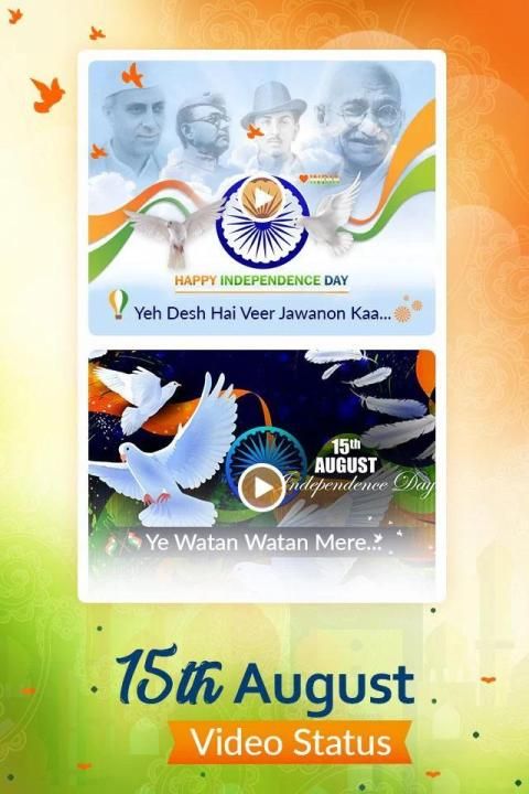 15th August Independence Day Status App is an excellent status application with different types of videos such as patriotic songs and dialogues.15th August Independence Day status made it simple to express your mood by sharing social status videos.