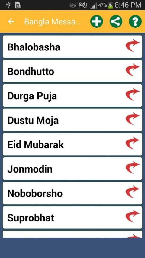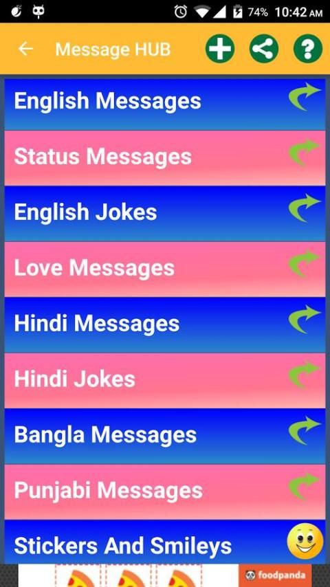किसी को स्पेशल हिन्दी अंग्रेजी बंगाली पंजाबी स्थिति शायरी संदेश भेजे लेकिन सामाजिक मीडिया, हिंदी, बंगाली और अंग्रेजी एसएमएस, चुटकुले और संदेशों की विभिन्न श्रेणियों के साथ ऑनलाइन / ऑफ़लाइन आवेदन का सबसे बड़ा संग्रह के लिए प्रेरणा का प्रयोग संदेश की कमी है। इस आवेदन साझा करने के विकल्प के साथ किसी भी सामाजिक मीडिया के लिए संदेश साझा करने के लिए काफी लचीला है