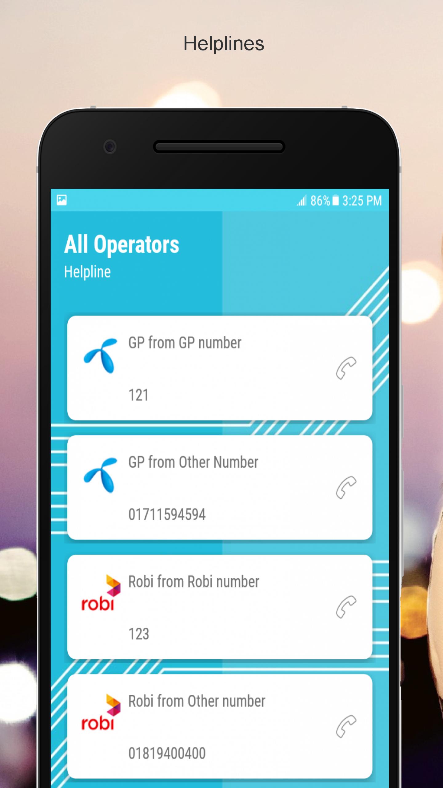 এই এপে 2018-2019 Update এর যে কোন পেকেজ কিনতে , ব্যালেন্স দেখতে, নিজের নাম্বার দেখা সহ সকল অপরেটরের সকল ussd কোড আছে।