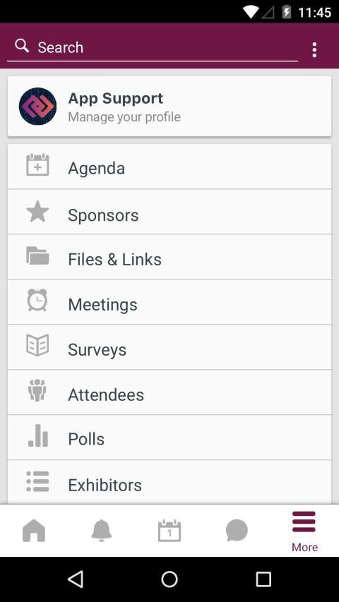 * Agenda — view the full agenda and related information, such as: session time, location and speaker info