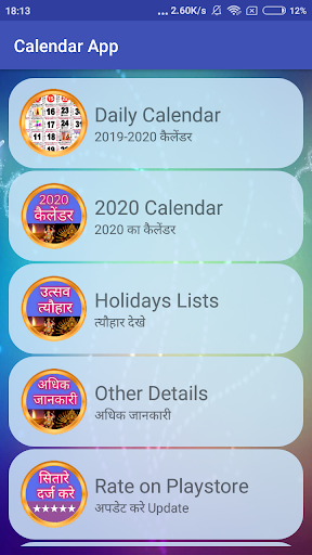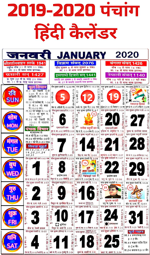 2019 - 2020 Offline Calendar नया पंचांग हिंदी कैलेंडर 2020