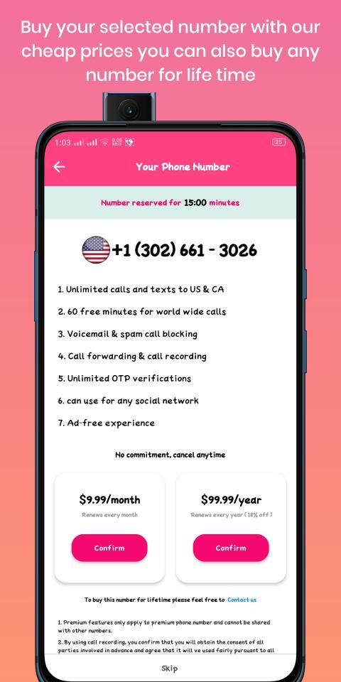 ◆ Flexible Prepaid (7/30/90/365 Day) and Pay-as-you-go plans to suit any temporary or long-term need. Extend, delete, and top up numbers at any time!