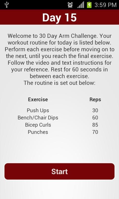 बस इस app स्थापित और दैनिक दिनचर्या का पालन करें. हमारे अनुस्मारक स्वतः दैनिक कसरत करने के लिए तुम्हें याद दिलाना होगा. बाकी दिनों अपनी मांसपेशियों को ठीक करने में मदद मिलेगी. आप अपनी चुनौती प्रगति का ट्रैक रखने के लिए पूरी कर ली दिनों अंकित करना. धोखा मत करो! ऐसा लगता है कि जैसे ही आसान है.