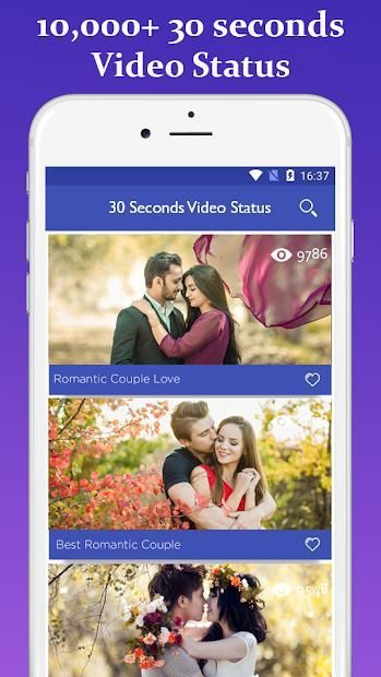 30 Seconds Video Status is one of the best app for all video song status for whatsapp.