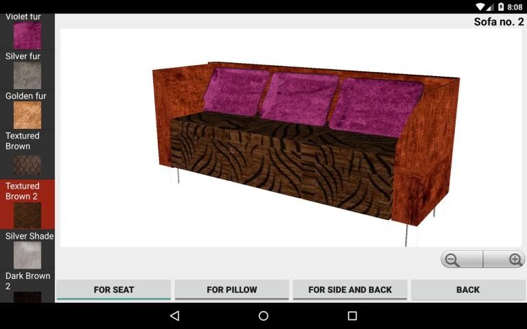 नोट: 3 डी फर्नीचर ऐप सबसे कम प्रतिपादन दक्षता के कारण, गोलियाँ .इसके फोन में देखा जाता है, बनावट सूची में के रूप में पसंद नहीं लग सकता।