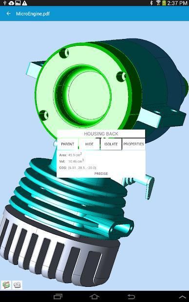Experience your rich 3D PDF data without being tied to your desktop! 3D PDF Reader extends the usefulness of 3D PDF documents by making it possible to view and interact with 3D PDF data directly on your tablet or smartphone.