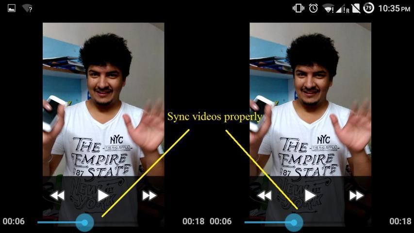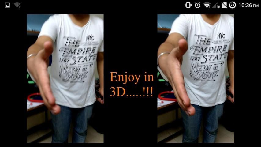 एक ही समय में दोनों पर पक्ष और रिकार्ड में कुछ ने दो फोन पक्ष रखने के (बाएं से डिवाइस सही रिकॉर्ड को सही वीडियो बाएँ वीडियो और डिवाइस रिकॉर्ड), अब एक मोबाइल के लिए 2 वीडियो हस्तांतरण, और उन 2 वीडियो का चयन करने के लिए इस अनुप्रयोग का उपयोग करें। अब वीडियो खेलते हैं और उन्हें ठीक से सिंक करने के लिए, 3 डी में अपने वीडियो का आनंद की तलाश पट्टी का उपयोग ..................