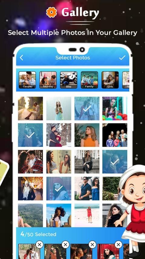app. Use a simple and easy method to make video clips without any editing tool. It is easy simple to create slideshow with your selected images into a mini animated 3D slideshow. App has the best collection of animation themes to personalize video clips with images.