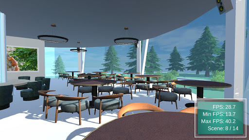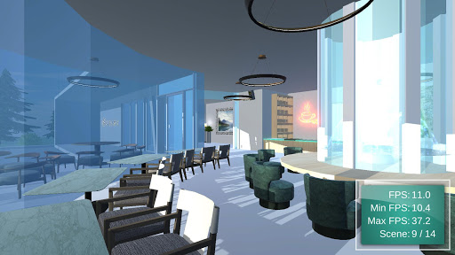 हम अपने उपयोगकर्ताओं के अनुभव की परवाह करते हैं, इसलिए इस 3 डी बेंचमार्क में हमने अद्वितीय और लक्जरी डिजाइन के साथ सुंदर कैफे के 14 दृश्यों को शामिल किया। इसके अलावा, 3 डी बेंचमार्क में ठंडा और उपयोगकर्ता के अनुकूल इंटरफ़ेस है।