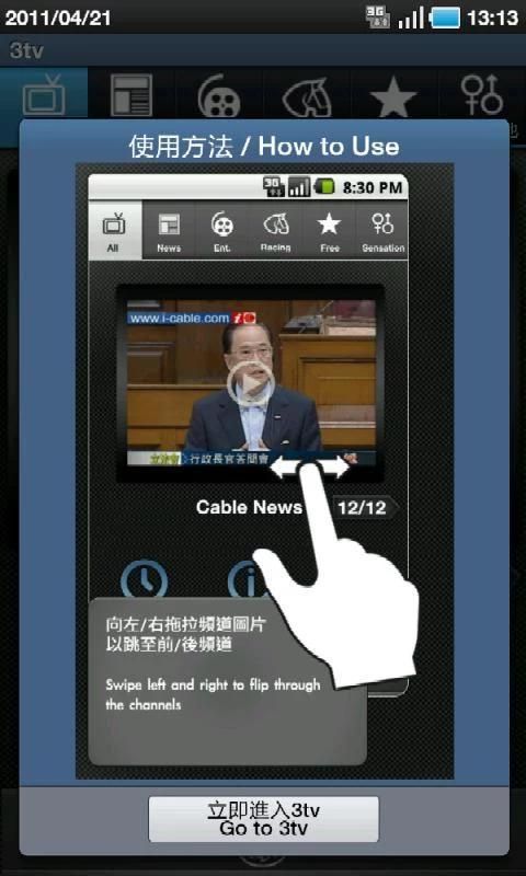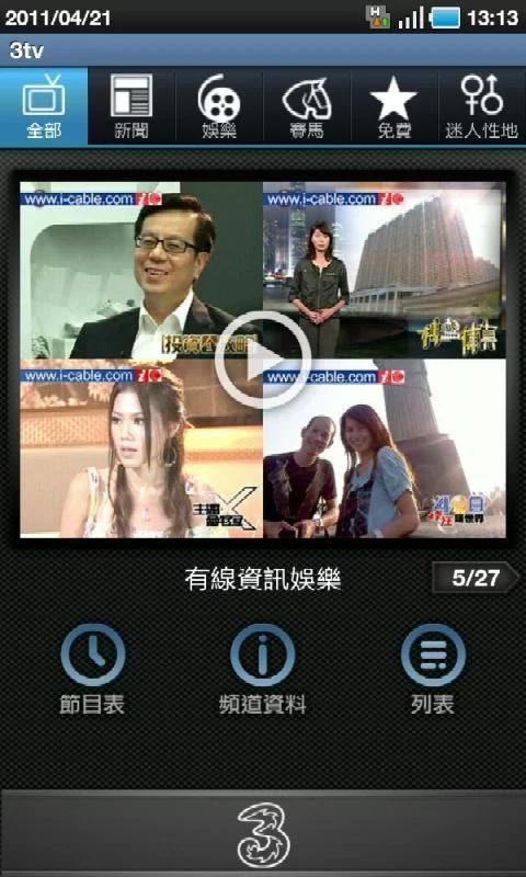 3tv हांगकांग, ताइवान और कोरिया से लोकप्रिय टीवी कार्यक्रमों खबर, वित्त, संगीत और रेसिंग चैनलों और मनोरंजन कार्यक्रमों कब्जा. क्या अधिक है, तो आप मुफ्त के लिए चयनित चैनल आनंद सकता है! सरल उपयोगकर्ता इंटरफ़ेस आप पूर्ण नियंत्रण के साथ किसी भी कार्यक्रम देखने के लिए अनुमति देता है.