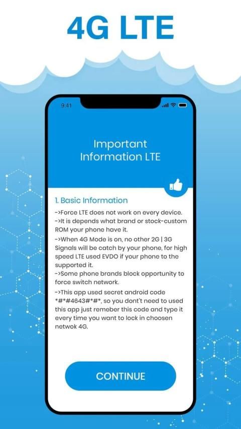 4G LTE Only Mode Switch app helps you to find and search for 4G LTE signal. Once you locked to 4G Mode, no other 2g/3g signals won't be catch by your phone so your device will always be in 4G Network.