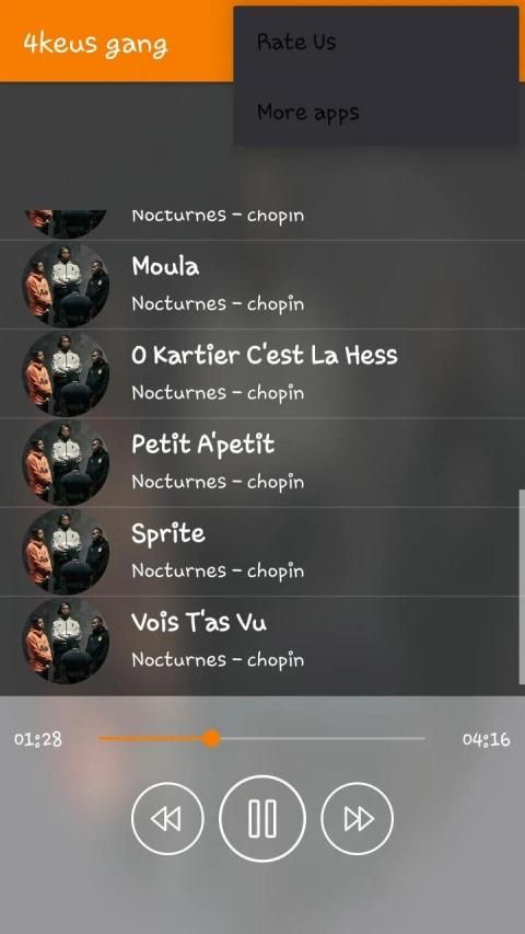 تطبيق 4keus gang هو تطبيق مجاني على متجر تطبيقات و يحتوي التطبيق على مجموعة من اغاني الفنان 4keus gang بدون اللجوء للإتصال بالانترنت sans internet