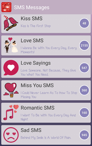 a huge collection of love, kiss, missing you, romantic, sad love, break up messages etc. This app supports offline. You can share these amazing messages with your loved one and can express your feelings.