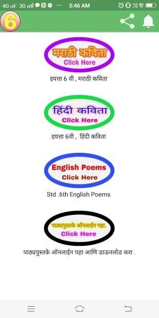 इय नोट 6 वी मराठी, हिंदी और ट्रायड विजिट कविता असर हे ऐप, ऐप और स्पेशल उचित उपयुक्त ऐप है।