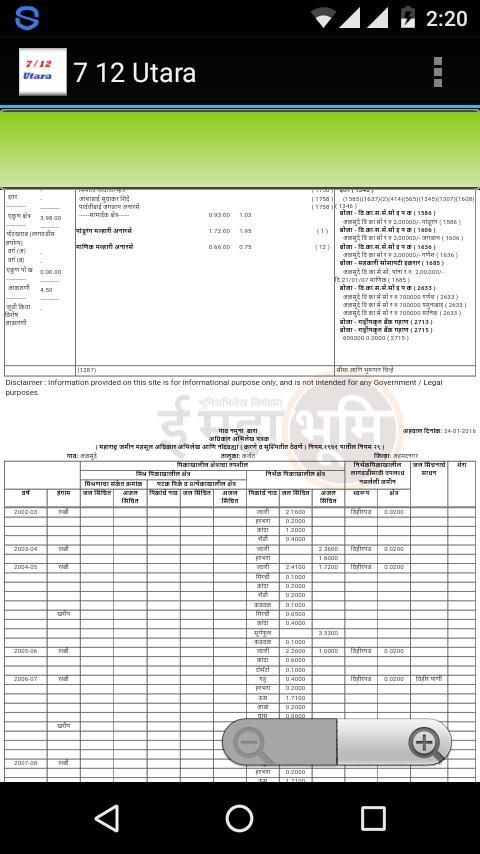7/12 Satbar Utara Maharashtra State application provide information about 7/12, 8(a), 6 , Entry Number etc,total area, total assessment value, , land, land use, name of farmer, ownership details and bhoja (loan) of Maharashtra