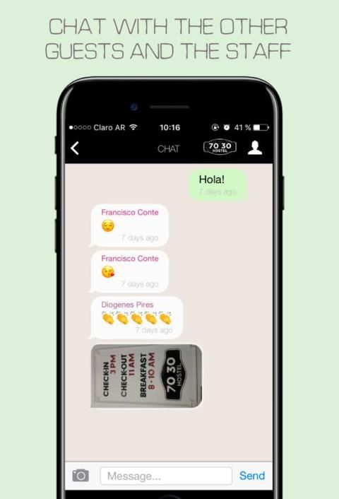 हम पसंद करते हैं कि आप व्यक्ति में मेलजोल, लेकिन हम अब कैसे उपयोगी और मज़ा यह छात्रावास मेहमानों और कर्मचारियों के आराम के साथ चैट करने के लिए हो सकता है। इसलिए हम चाहते हैं कि चारों ओर एक अनुप्रयोग का निर्माण