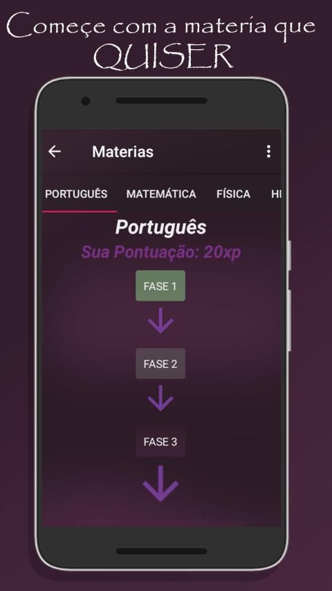 É super fácil, apenas instale e clique em umas das matérias que desejar, PORTUGUÊS, MATEMÁTICA, QUÍMICA, INGLÊS, BIOLOGIA...