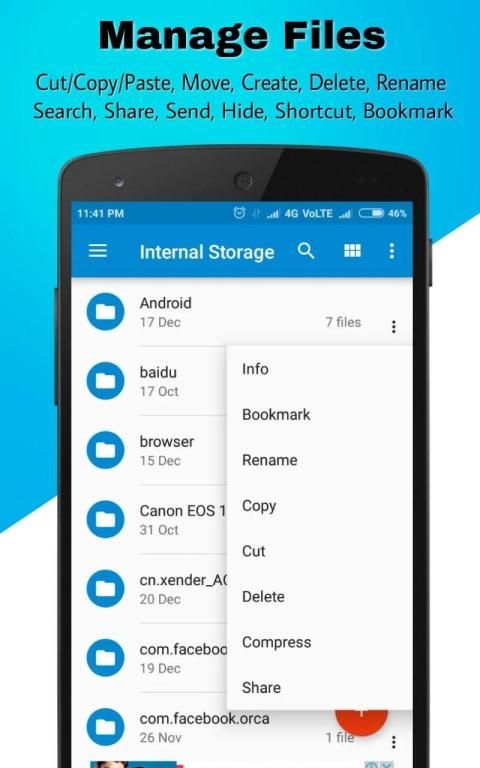 supports every file management actions (open, search, navigate directory, copy and paste, cut, delete, rename, compress, decompress, transfer, download, bookmark, and organize). File Manager Plus supports media files and major file formats including apk.