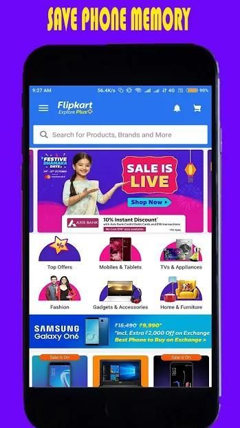इस ऐप में फ्लिपकार्ट लाइट, अमेज़ॅन लाइट, शॉपक्लूस, 2 गुड, स्नैपडील, अलीएक्सप्रेस, मित्रा, जैबोंग इत्यादि शामिल हैं। स्विगी, उबर ईट्स, ज़ोमैटो, फूड पांडा इत्यादि जैसी खाद्य ऑर्डरिंग साइटें।